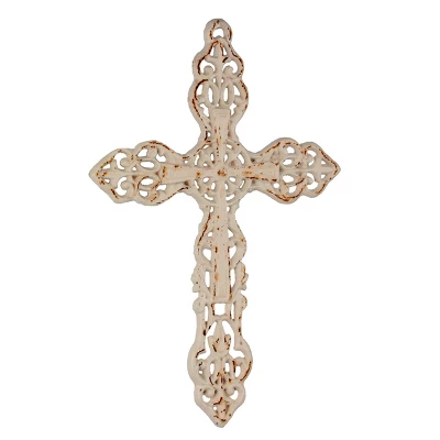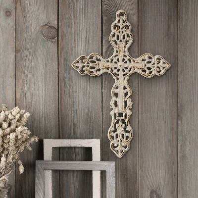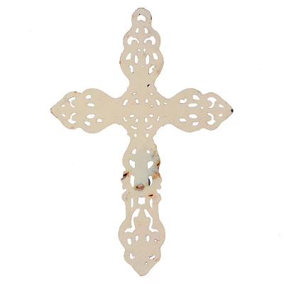 Stonebriar’s 13″ x 8.6″ decorative distressed cast iron wall cross is the perfect addition to any home decor. Wall cross features a scrolled Celtic design with a lightly distressed worn white and rust finish for an antique feel. Celtic wall cross comes with an attached metal hanging loop and is easily installed with a nail or wall hook (not included). Vintage wall cross can be hung by itself or hang it with other decorative wall crosses to create a faith inspired display.