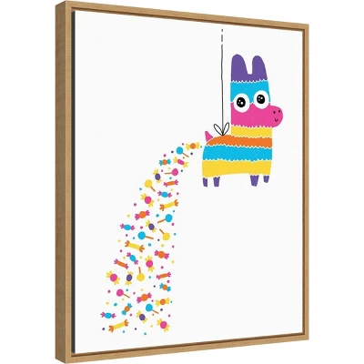 ART DESCRIPTION: Although candy in a pinata has been likened to many things, poop seems the most appropriate for this particular angle. Colorful wrappers and strips of paper lend a party atmosphere to help make any day a celebration. This Amanti Art canvas art print was created by Michael Buxton and printed by Amanti Art in Madison WI. The canvas is stretched by hand and finished with a float frame. Individually made using traditional custom framing techniques, it has the quality you would expect from your local frame shop. Because of our attention to detail and focus on artistry, architects, interior designers, and homeowners alike choose this framed canvas artwork to create beautiful living spaces.