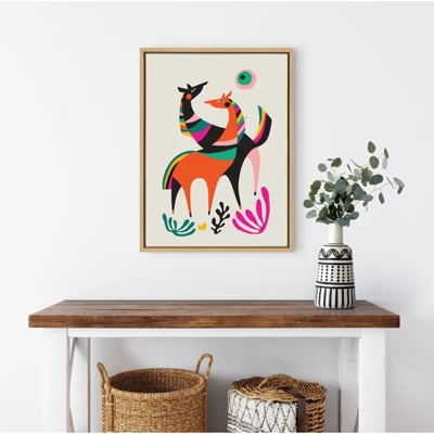 Check out this quirky, colorful, and fun horse print by artist Rachel Lee of My Dream Wall. Framed in the USA in Waunakee, Wisconsin, this floating canvas art will be a pleasure to look at every day in your living room, bedroom, nursery, or any room in the home. Printed on gallery-wrapped canvas and framed with a lightweight polystyrene frame, this wall art has two hangers already attached to the MDF back for easy wall display. The outer dimensions are 24 inches tall by 18 inches wide by 1.63 inches deep. Print Name: “Dancing Horses”