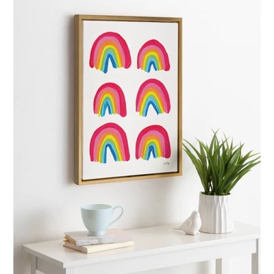 This adorable rainbow art is the perfect touch to a bedroom. Full of sunshine, color and pride it will bring happiness to any room. Framed in the USA in Waunakee, Wisconsin, this floating canvas art will be a pleasure to look at every day in your living room, bedroom, nursery, or any room in the home. Printed on gallery-wrapped canvas and framed with a lightweight polystyrene frame, this wall art has two hangers already attached to the MDF back for easy wall display. The outer dimensions are 24 inches tall by 18 inches wide by 1.63 inches deep. Print Name: “Rainbow Collection”