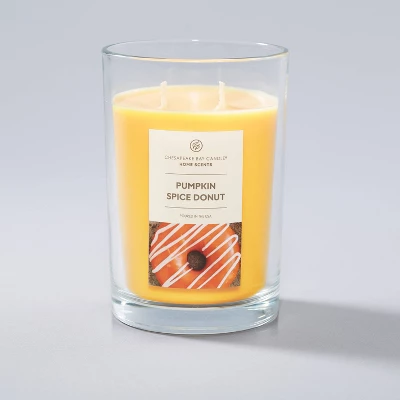 Enjoy a warm pumpkin donut dusted with maple sugar, cinnamon and nutmeg in the Pumpkin Spice Donut Fragranced Candle in the Home Scents Collection from Chesapeake Bay Candle®. Infused with natural essential oils, this large 2-wick candle creates a relaxing atmosphere in any room. The gold metal lid adds functional style to make an ideal gift for yourself or others.