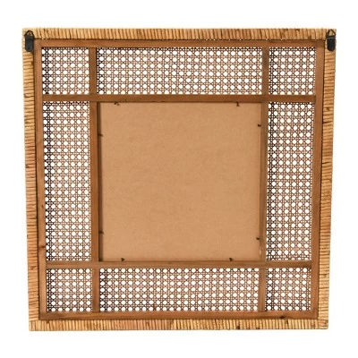 This boho inspired wall mirror features an intricately woven rattan frame in a natural finish; This mirror is made from glass, firwood, and rattan; Mirror measures 23.75″ L x 1″ W x 23.75″ HThis versatile mirror can be placed in an entryway, living room, or bedroom for a quick and stylish update.
