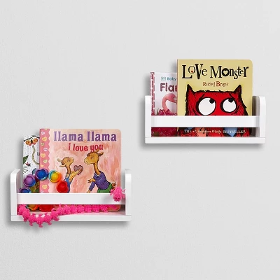 Create a designated bookshelf area for your little ones to keep their favorite books with these wall mounted bookshelves. At just 10” wide and 4” tall, these small floating wall shelves are perfect for organizing baby and toddler books in the nursery, displaying nursery décor, setting mail in the entryway, or creating an adorable kids bookshelf wall in the playroom. Looking for a small office wall shelf? Pair this white wall bookshelf with one or two more shelves in a staggered or stacked arrangement to set stationery, display small picture frames and other decorative items in your workspace. Not only is this kids wall shelf great for playrooms, entryways and offices, but it makes an ideal small bathroom wall shelf and the perfect solution for adding shelf space and décor to small bathrooms. Display small candles, succulents, reed diffusers and more without worrying that anything will fall off the edge, thanks to the horizontal book bar in the front. Includes instructions for easy assembly.