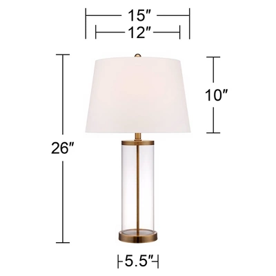 360 Lighting 26″ High Cylinder Country Cottage Table Lamps Set Of 2 Fillable Clear Gold Finish Glass Metal White Shade Living Room Bedroom Bedside