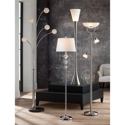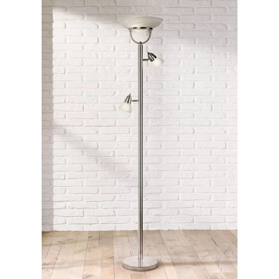 Cool style torchiere lamps help accent your home. This contemporary torchiere floor lamp features a 3-in-1™ design that offers great versatility. Get overall room light from the torchiere and direct task light from the two side lamps.