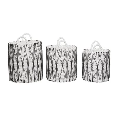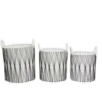 - Black cotton rope string accents give these baskets that boho chic vibe