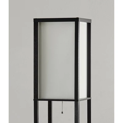 Brighten up your living space with the versatile convenience and striking appeal of the Adesso Titan Tall Shelf Floor Lamp. Standing at 72″ tall, this Lamp has an open box frame made of black MDF veneer with 2 square shelves and the base offering space to display photographs, plants, decorations and mementos. The shade is made of durable poly/cotton and has a collapsible square shape that enhances any decor in your home. Bulb is not included.