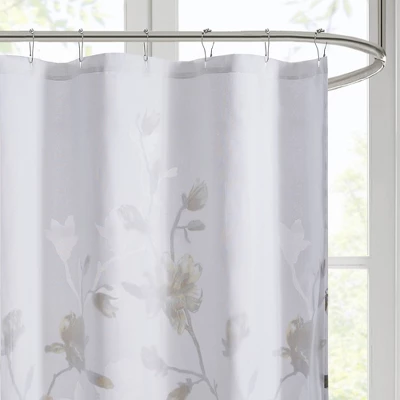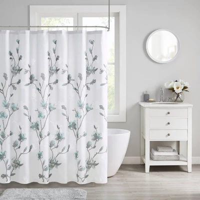 Add a soft touch of beauty to your bathroom with our Anise Floral Printed Burnout Shower Curtain. This light weight shower curtain features a beautiful floral printed burnout design in soft hues, for a fresh and modern duet. An added microfiber liner provides better privacy and drapability; while still machine washable for easy care. Measuring 72″x72″, this floral shower curtain is the perfect addition for a lively, feminine touch.