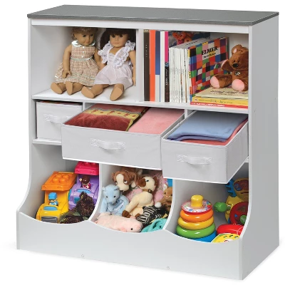 - A versatile unit with shelf, basket, and bin storage for toys, books, games, crafts, and more