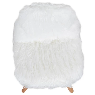 Take your childs bedroom or playroom seating to the next level with this shaggy faux fur accent chair. The padded seat and touchably soft upholstery along with a full back design provides a comfortable place for young children to learn and play. This kids fuzzy chair is a cool way to incorporate fun seating in any space. The ergonomically curved form is shaped for long-lasting comfort while the flared beechwood legs feature metal bracing that adds style as well as support. The 14″ seat height is recommended for children ages 5-7 and will add a whimsical look to any space. Fixed floor glides protect your hard flooring surfaces from scuffs and scrapes. Assembly of this scoop chair takes less than 10 minutes. Spills and messes clean up with a solvent based cleaner, no water needed. Liven up your kids decor with this fashionable seat for their bedroom or playroom. Additional Features: Add fun seating to your home or business with furry shaggy kids chairs