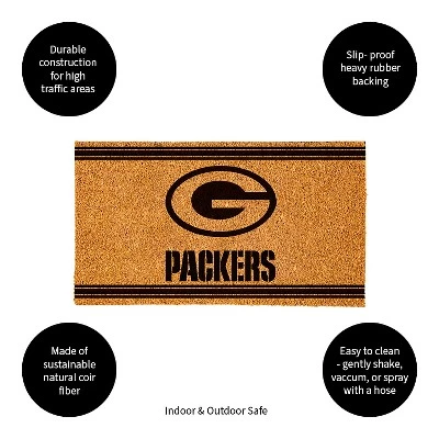 - Measures 28 x 16 inches. Make sure you’re prepared for the next big Green Bay Packers game with this Logo Turf Mat.