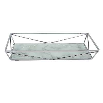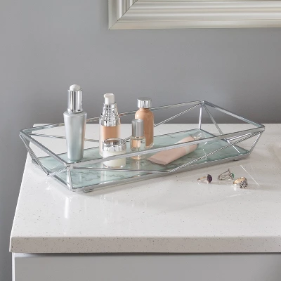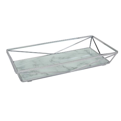 This Home Details Vanity Tray features a chrome finish and an attractive tempered glass agate design base that adds the perfect touch of elegance to your home. Fits easily on a bedroom dresser or bathroom countertop and is a perfect place to store your perfumes, cosmetics and jewelry or guest toiletries.
