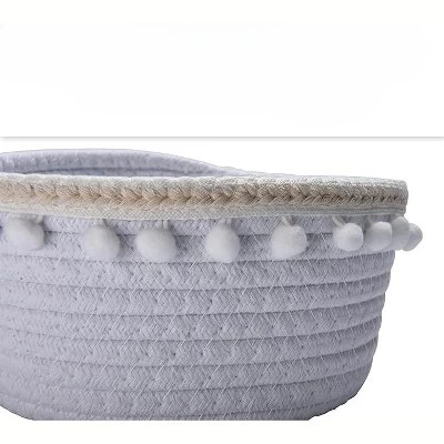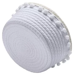 - Easily move this durable cotton woven rope basket around to keep your little one’s clothes organized. Its neutral white color complements any nursery decor.