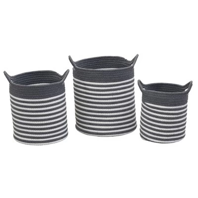 This stunning, Striped Cotton Basket Set from Household Essentials will transform any bedroom or living space. Stow away sweaters, textiles, accessories or bits and baubles to help keep you organized. Each basket in this set of three is adorned with two convenient handles for easy mobility. The timeless detailing and natural appeal will carry these sophisticated storage pieces through every home refresh. The Striped Basket Set features soft and flexible construction for sophisticated storage. Note: Color and size may vary as this is handwoven from natural fibers.