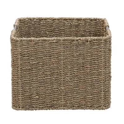 This Square Wicker Basket from Household Essentials is a classic addition to any room of the home. The simple but effective design is an amazing storage choice for a variety of items. The natural seagrass will easily mesh with the pre-existing style of your living room, office or bedroom. This square wicker basket is woven around a strong metal frame. This combination of materials adds durability and style. The weave is an instant eye-catcher and a great alternative to plastic bins. The tightly-woven seagrass will also help to partially conceal the contents, giving the room a more composed and put-together look. Use this basket in the office for files and supplies, in the living room to hold books and throw blankets or in the bedroom to store various accessories. Switch-out those old plastic bins with this beautiful Square Wicker Basket from Household Essentials. Note: Color and size may vary slightly as this is handwoven from natural fibers.