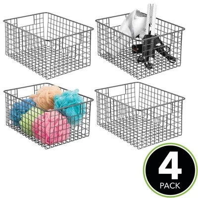 Bring stylish storage to any room in the house with the Wire Storage Organizer Basket Bin from mDesign. Featuring a large open compartment for storing bathroom towels, shampoo, conditioner, body lotion, makeup, and more. The built-in handles make it simple and easy to move on and off shelves or in and out of closets. Decorative and functional, pair multiple bins to create a decorative organization system in your home.