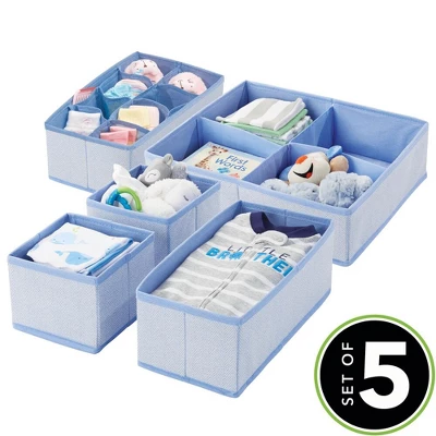 Create customized storage in your baby’s room or nursery with the Fabric Storage Organizer Set from mDesign. Place the organizers in drawers, closets or on top of dressers and changing tables. The organizers separate and stores all of your little one’s essentials, and make it easy to find and grab what you need right away! Various sized compartments hold items like hats, socks and shoes, hair bands, books, blankets, medicine and other accessories in one convenient place.