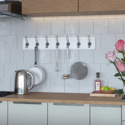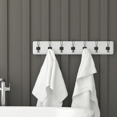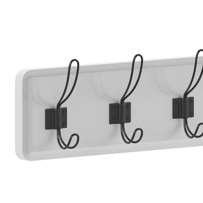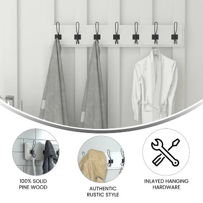 Merrick Lane 34 Inch Wall Mount Solid White Pine Wood Storage Rack With Hanging Hooks, Entryway, Kitchen, Bathroom