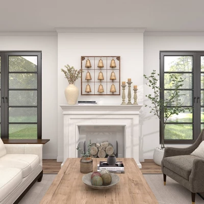 - •This eclectic style metal bell wall plaque comes in a brass finish