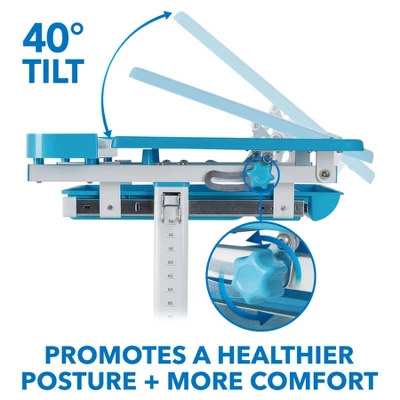 - Tilting desktop provides an optimal angle for writing, reading and drawing
