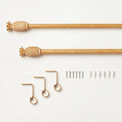 Add tropical charm to your curtain display with this Pineapple Faux-Wood Curtain Rod from Opalhouse™ designed with Jungalow™. This faux-wood curtain rod painted in a natural finish beautifully complements your home decor. It’s detailed with carved pineapple finials on both ends for a lovely decorative look. The versatile rod easily adjusts in length to fit your window space. Plus, it comes with mounting hardware for quick and easy installation in any room.