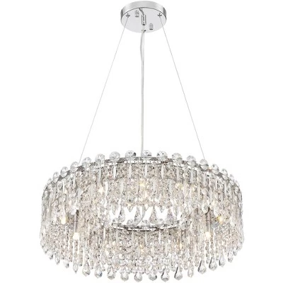 Elevate your decor with the sparkling personality of this twelve-light LED crystal island pendant. From Possini Euro Design, this pendant delivers incredible sophistication and elegance for your living space. It features a chrome finish that gleams over iron and stainless steel construction. The round body is absolutely draped in crystal accents, which glitter beautifully when the light is turned on. Perfect for a refined kitchen makeover.