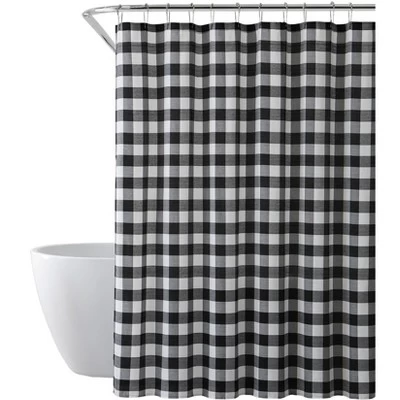 Round out your bathroom ensemble with this lovely Buffalo Plaid Shower Curtain. Featuring a traditional plaid print with classical colors, this long shower curtain will be very easy to fit within any existing décor, as well as pair or match with other bathroom items. The curtain comes with 12 button holes for easy hanging. Liner and hooks sold separately.