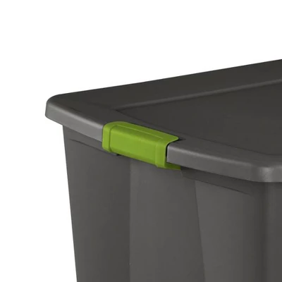 Instantly organize any space in your home, office, or workshop with this 8-Pack of Sterilite 45-Gallon Plastic Stackable Storage Tote with Lid and Wheels in Grey.This set of 8 heavy-duty storage totes makes organizing and storing a multitude of items easy and convenient. Equipped with wheels, these totes are the ideal portable solution for storage even the heaviest loads. Contain and conceal sporting gear, camping supplies, bedding, seasonal items, and more in this large capacity tote. Functional, durable, and easy to clean, these premium plastic totes will last for years to come.Durable construction and contemporary styling make this a great solution for storing household items away in the garage, basement, or attic. The sturdy latches ensure the lid remains securely attached to the base, keeping contents safely stored inside. Multiple totes are able to stack neatly on top of each other and the contoured end panels create a surface for comfortable lifting. The overall assembled dimension so these totes are 36.62 inches long by 21 inches wide, by 19.50 inches high.Make organizing your garage, shed, or basement easier than ever with this 8-Pack of 45 Gallon Plastic Stackable Storage Totes from Sterilite.