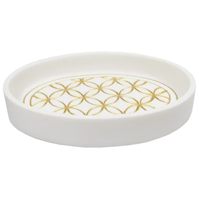 Bring the Elegance to your bathroom with Pendant bathroom accessory set. This modern handcrafted resin collection is luxurious, stylish, and helps keep your bathroom décor clean, fresh, and organized. The set includes: a tumbler, lotion/soap dispenser, toothbrush holder and soap dish. The Pendant accessory collection is white with a gold repeating pattern. Each piece is hand crafted in a durable resin. Easy to wipe clean and made to last a lifetime. This ultra-luxurious collection will surely add contemporary charm to your bathroom.