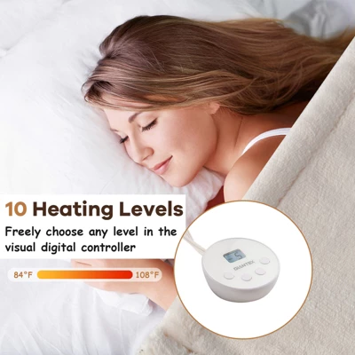 - 【10 Heating Levels】: The electric heated blanket features fast heating design, which instantly gets rid your coldness. Furthermore, 10 heating levels from 84°F to 108°F allows you to customize the temperature you want. And the built-in thermostat ensures constant and gentle warmth for better using experience.