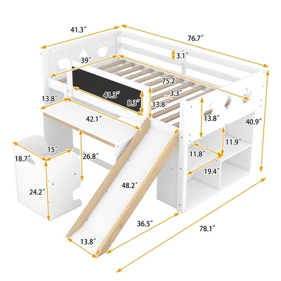 - [Desk and Chair Set Included] This loft bed features with a desk and chair bringing convenience to your bedroom which can be regarded as a learning space or workplace, perfect for small spaces.