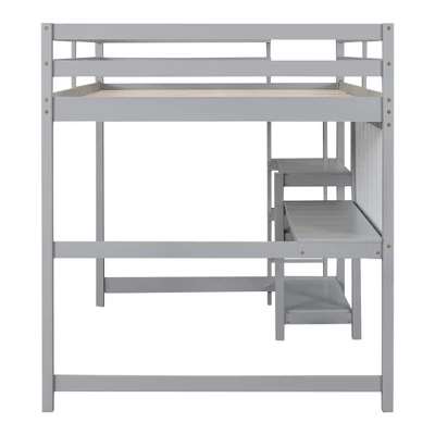 - 【Versatility】The space under the full size loft bed is a great place for you to read, do homework or play and create your own world of exploration. The bed is equipped with 3 tiers of shelves, desk and writing board to keep everything you need. The writing pad can be written and drawn with a water-based pen, and is easily erased.